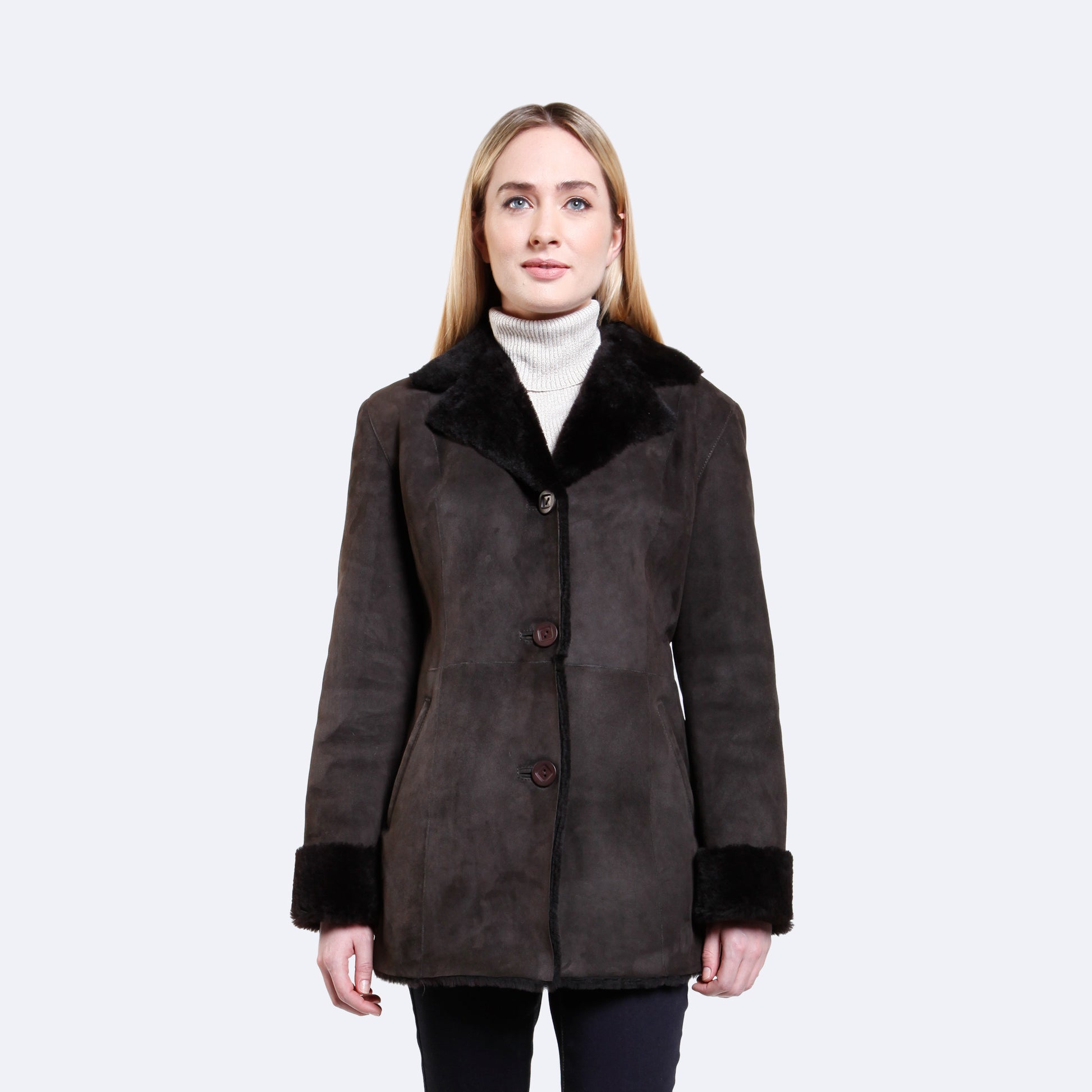 Relax and stay warm in this stylish women's shearling coat. The Alice Sheepskin Jacket features a front button closure and two front slash pockets. With a lightweight, soft, and supple lambsfur interior, it serves as a natural insulator of unequaled warmth. Enjoy the luxurious shearling trim that adds a touch of elegance to your winter wardrobe.