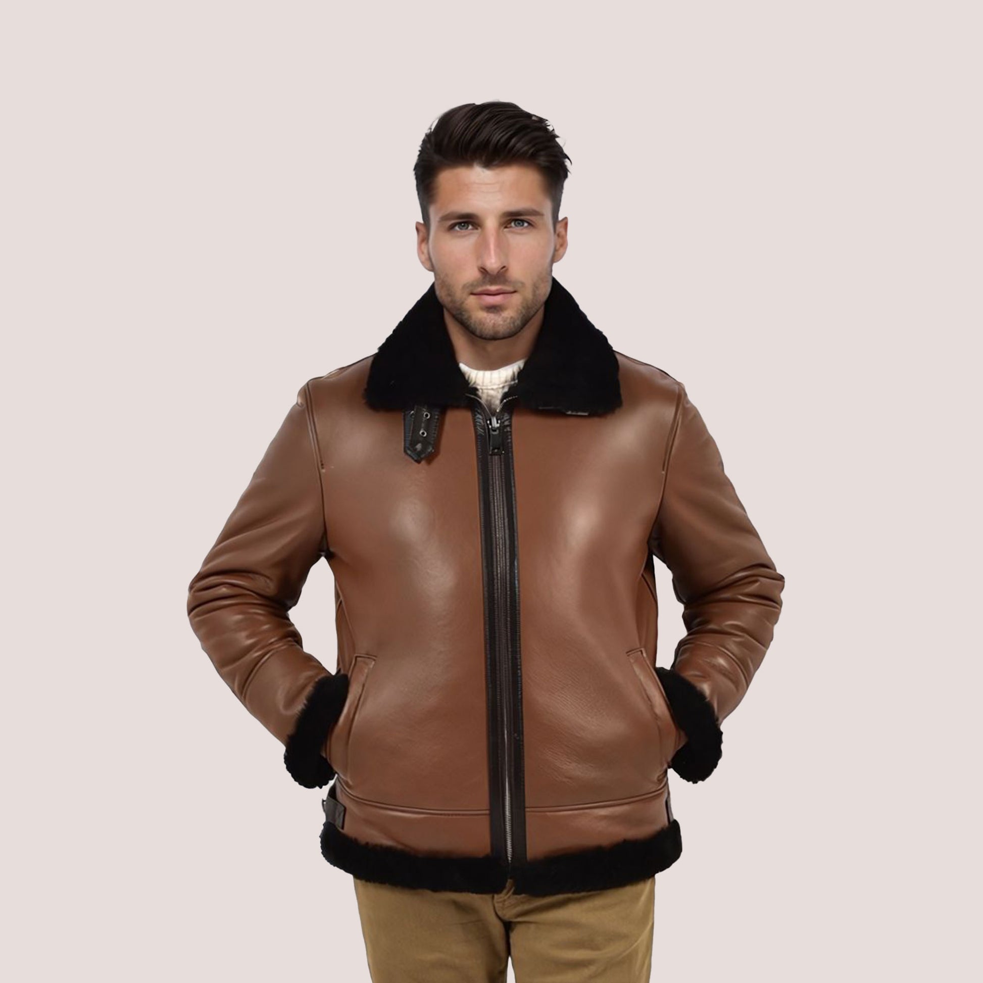The Carter Sheepskin Jacket is designed for ultimate warmth and style. Featuring back buckles on each hip side, it offers a customizable fit. The exposed shearling on the hem, collar, and cuffs adds a touch of luxury. With a front dual zipper closure and a buckle closure on the collar, it ensures secure warmth. Interior leather pockets provide practicality. As a natural insulator, this jacket delivers unequaled warmth, making it an essential addition to your winter wardrobe.