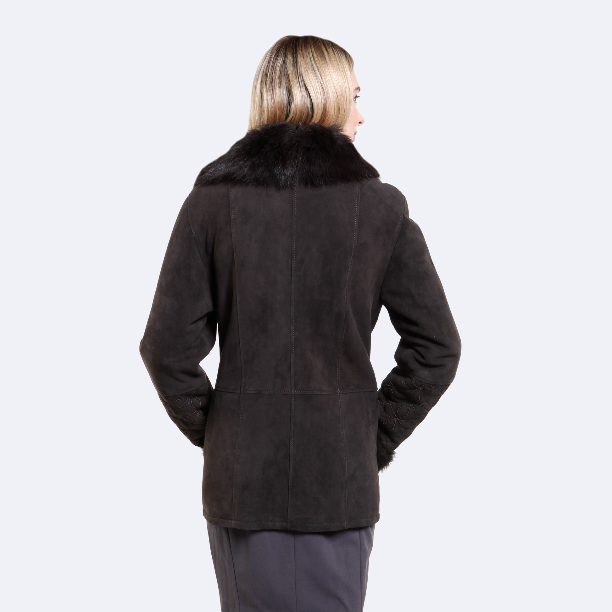 Enjoy a casual day with the Sara Sheepskin Jacket. This women's asymmetrical zip jacket features a front zipper closure, front slash pockets, and folded cuffs. The contemporary fit is complemented by a fur collar and fur cuffs. Made from lightweight, soft, and supple Spanish Merino lamb fur, this jacket is both stylish and comfortable. Dyed Spanish Merino Lamb Fur adds a luxurious touch.